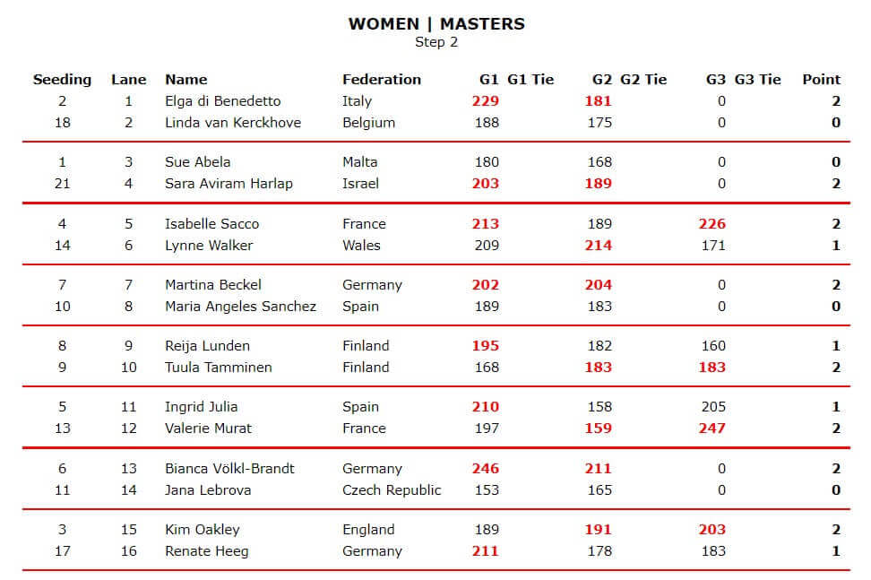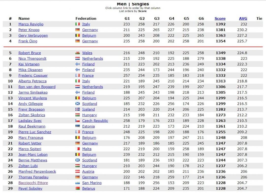 Labākais 1 spēles rezultāts čempionātā vīriešiem: 279 (Juan C. Ramonde, Dennis Mercieca, Bacciocchi Ettore,Zoltan Skobrics, Nico Thienpondt)