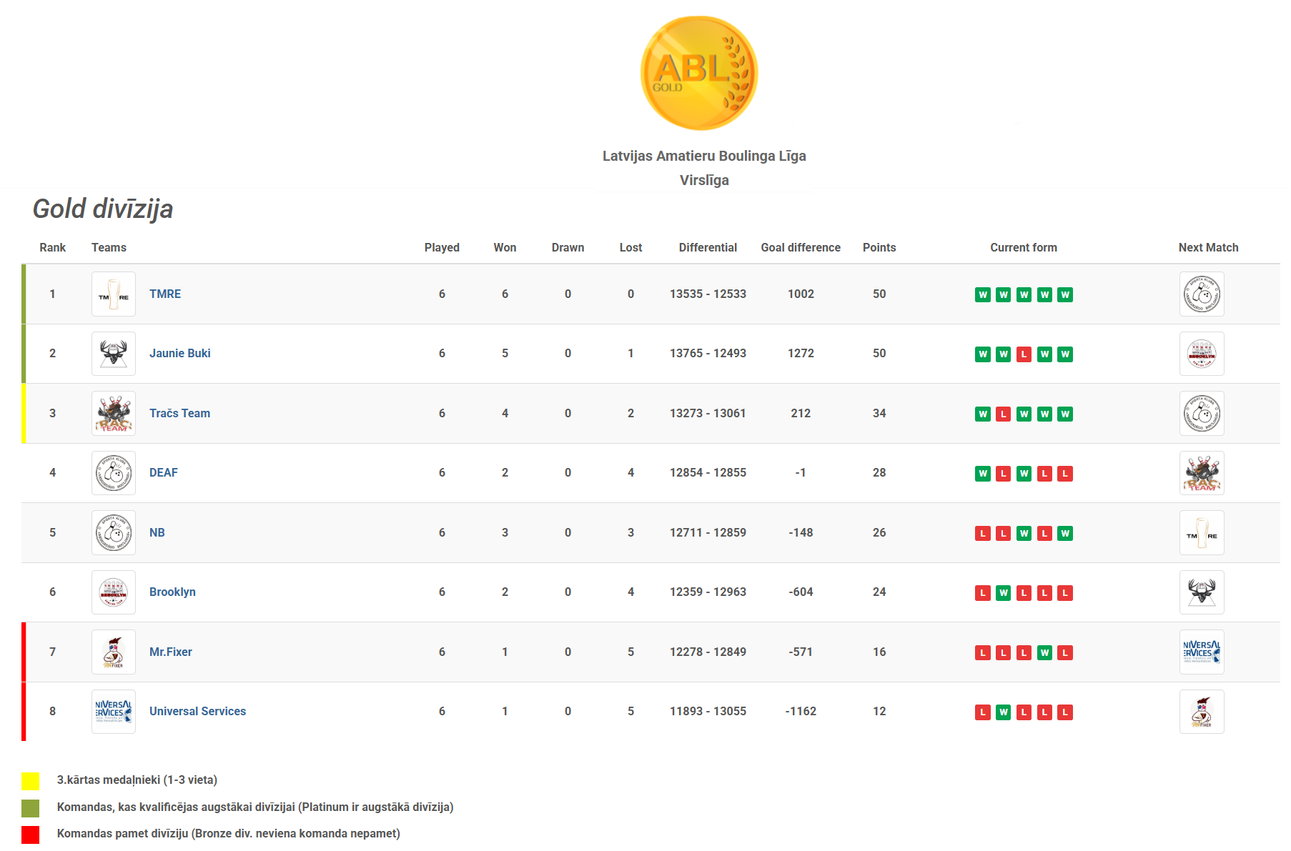 TMRE pēdējā tūrē tiksies ar NB, kamēr Jaunie Buki spēkosies ar Brooklyn. Komandai Brooklyn pietiks ar 2 punktiem, lai pat terorētiski tā nevarētu ierindoties 7 vietā un pamest Gold divīziju.