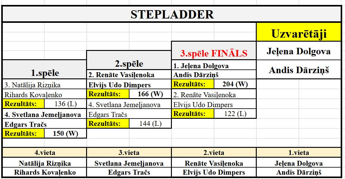 🏆Par turnīra uzvarētājiem kļuva – Andis Dārziņš un Jeļena Dolgova.