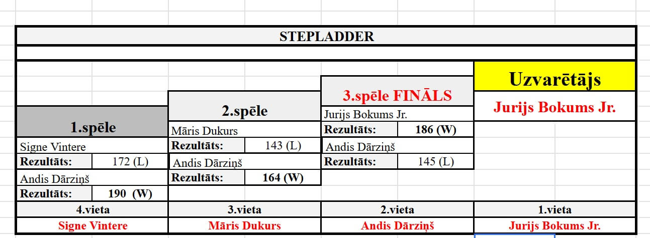 5. Fināli (TOP 4) – “Stepladder”: 12:15-13:30