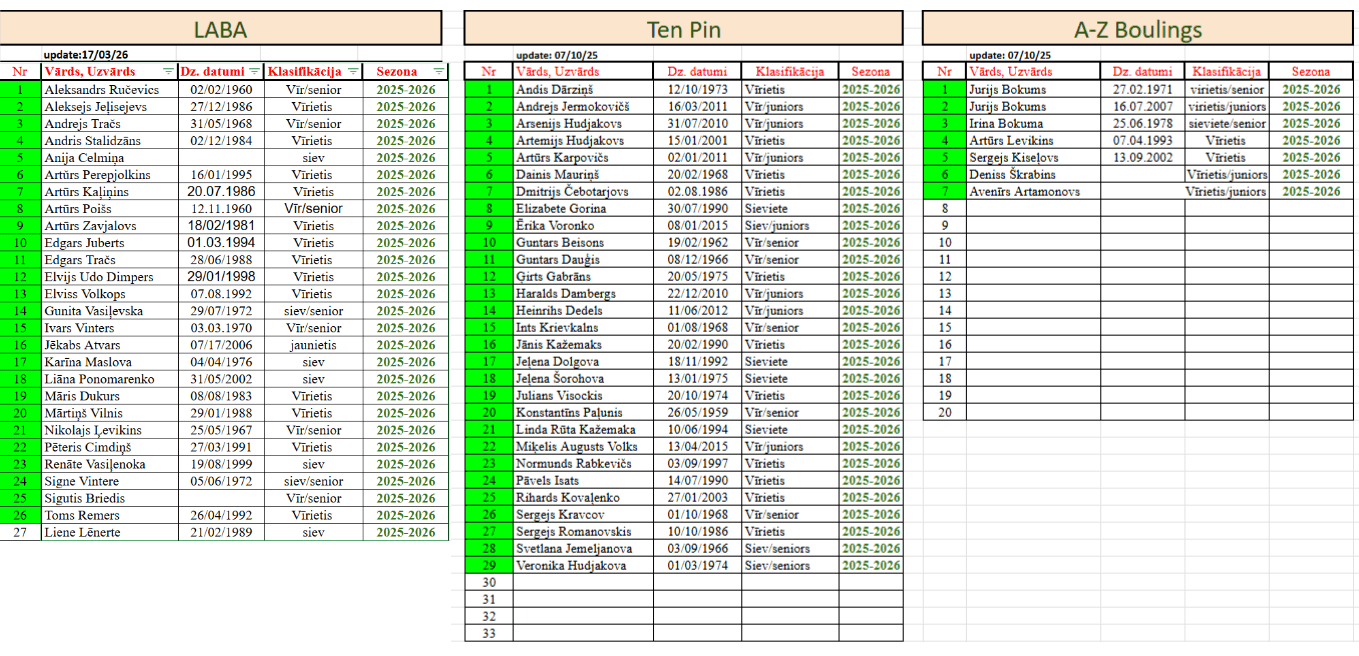 1.1.7. Klubu organizētās sacensības un boulinga līgas, ja tajās piedalās vismaz 25 spēlētāji.