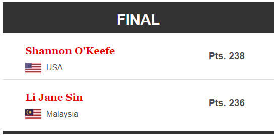 6 game – Diana Zavjalova vs Shannon O’Keefe USA 228:177 /+30 points/ = 258; /4.VIETA/