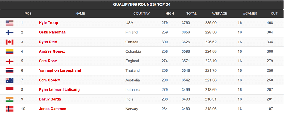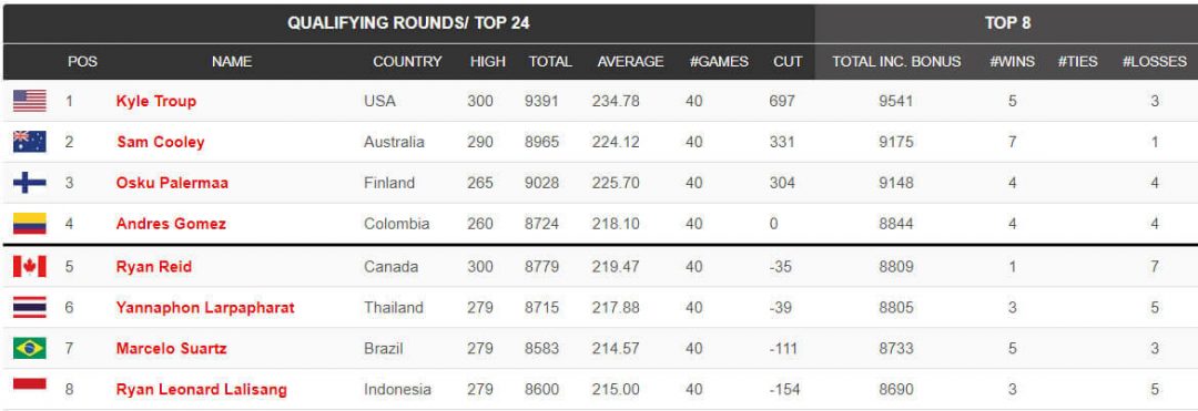 The next stage of the tournament tomorrow (Friday) will see the top 24 players bowl a further eight games to determine who will go through to the top eight round robin on Saturday.