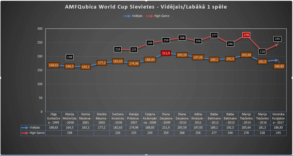 Latvija piedalās čempionātā kopš 1999 gada. Izlaists tika 2003,2004,2005 gads. Šajā laikā visvairāk dalībnieku ir bijis 2010 gadā, kur arī Diāna uzrādīja līdz šim labāko Latvijas dalībnieču rezultātu – 7 vieta. Vislabākais 1 spēles rezultāts 278 pieder Marijai Tkačenko, ko viņa sasniedza 2014 gadā. Lielākais vidējais tika sasniegts 2009 gadā. To izdarīja Diāna Zavjalova – 211,9.