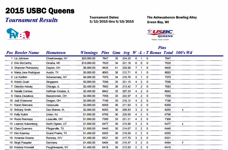 Last Updated: 25 May 2015: For Women after USBC Queens