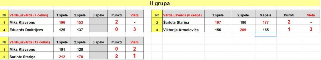2 grupā uzvaru svinēja Šarlote Stariņa. Finālā tika apspēlēts Miks Klavsons ar rezultātu: 2:0 (212:191; 178:128).
